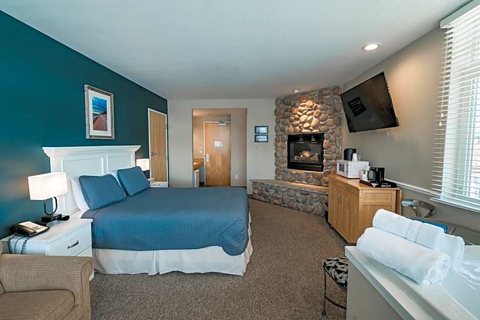 This double room has a sofa, fireplace and microwave. A hot tub and a flat-screen TV are also included.